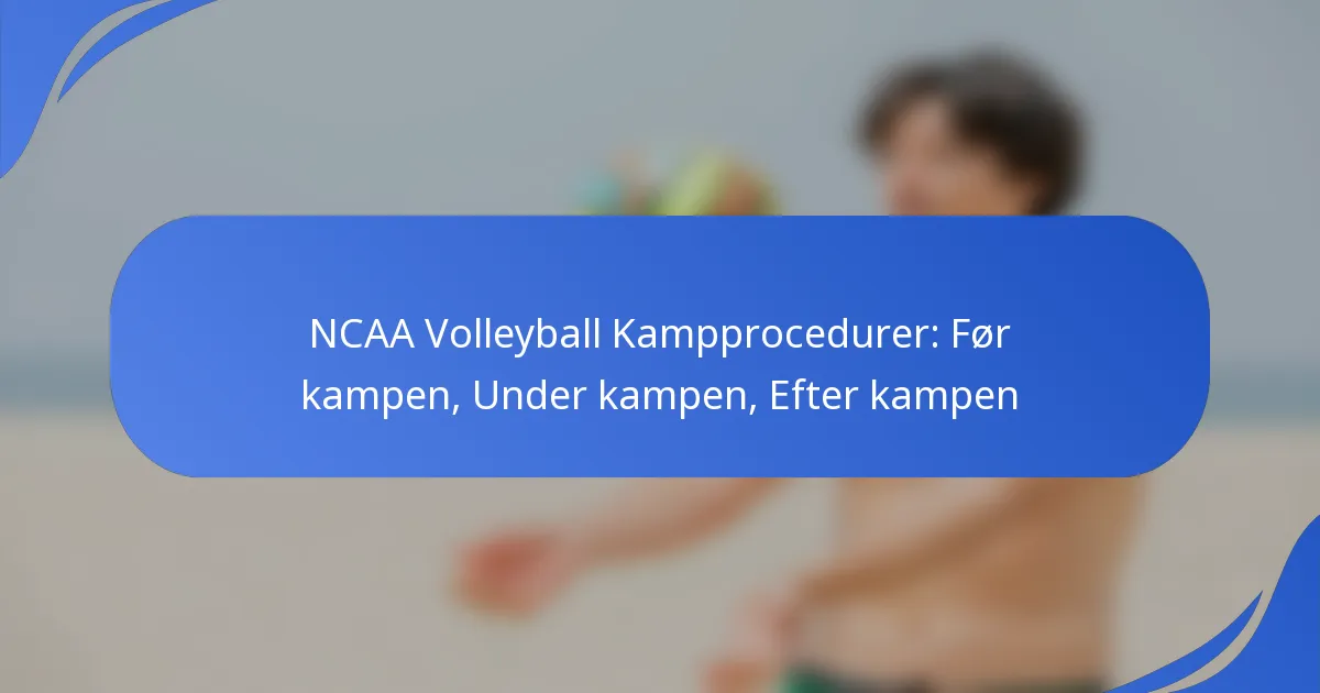 NCAA volleyballkampprocedurer omfatter essentielle skridt før, under og efter kampen for at sikre en problemfri oplevelse for spillere og fans. Forberedelsesaktiviteter fokuserer på opvarmning og præsentation af holdene, mens procedurerne under kampen opretholder fair play og glidende operationer. Procedurerne efter kampen letter en professionel afslutning, herunder spillernes opførsel og medieinteraktioner.